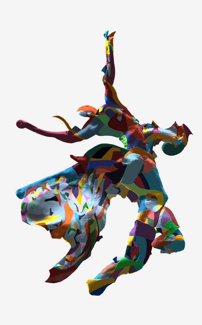 The spinner paintings establish one angle of view of the figures, which translate into a 2D base relief.