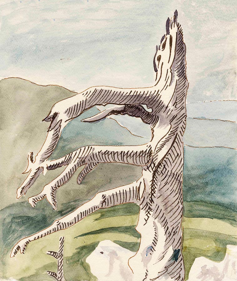 I seek out solitary trees to personify. They act as witnesses in my landscape paintings.